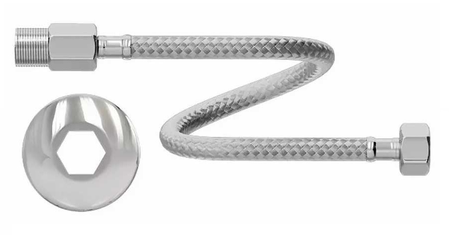 Produzido em malha trançada de aço inoxidável e tubo interno de borracha, possui rosca 1/2"